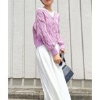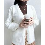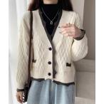 カーディガン Vネックケーブルニットショートカーディガン レディース