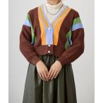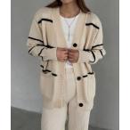 カーディガン マイクロボーダーVネックコンパクトカーディガン レディース