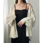 カーディガン ボリュームVネックシャギーニットカーディガン レディース
