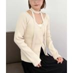 カーディガン チョーカーVネックリブニットカーディガン レディース