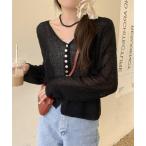 カーディガン Vネック長袖薄手生地カーディガン レディース