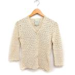 シビラ SYBILLA シルク 透かし編み カーディガン 7分袖 Vネック 40 ライトベージュ /FT36 レディース