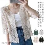 サマーカーディガン レースカーディガン トップス レディース ショート丈 7分袖カーディガン 透かし編み トップス 羽織り 冷房対策 春 夏 秋 薄地