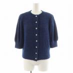 【中古】ルネ Rene 24年製 フラワーボタン ハーフスリーブ ニット カーディガン 7分袖 34 紺 ネイビー 6412620 /AN49 レディース 【ベクトル 古着】 250703