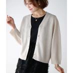 「Demi-Luxe BEAMS」 7分袖ニットカーディガン - ベージュ レディース