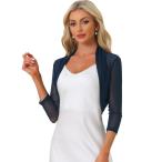 Allegra K ジャケット カーディガン シュラグ レースボレロ シアー 無地 シュラグ トップス 七分袖 前開き エレガント レディース ネイビ