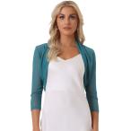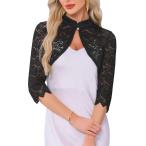 Allegra K ジャケット カーディガン シュラグ レースボレロ シアー 無地 シュラグ トップス 七分袖 前開き エレガント レディース ライト