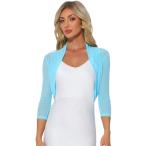 Allegra K ジャケット カーディガン シュラグ レースボレロ シアー 無地 シュラグ トップス 七分袖 前開き エレガント レディース ブルー