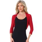 Allegra K ジャケット カーディガン シュラグ レースボレロ シアー 無地 シュラグ トップス 七分袖 前開き エレガント レディース レッド