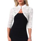 uxcell Allegra K ジャケット カーディガン シュラグ レースボレロ 無地 七分袖 前開き エレガント レディース ホワイト XS