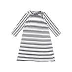 cheibear レディース スリープウェア コットン ストライプ 7分袖 ラウンドネック ミディ丈 コントラストカラー ソフト スリープドレス ナイ