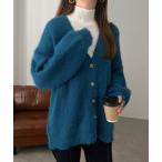 カーディガン フェザーヤーン長袖ニットカーディガン レディース