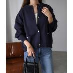 ジャケット ノーカラージャケット メタルボタンニットカーディガン / ニットジャケット レディース