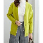 カーディガン パール付きボリューム袖ニットカーディガン レディース