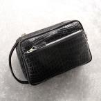 クロコダイル セカンドバッグ メンズ センター取り マット 加工 ダブルファスナー ブラック カードホルダー付き 4FA 保証書 付き(06001694r)