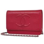 シャネル CHANEL ココマーク チェーン ウォレット 財布 チェーンウォレット キャビアスキン レッド レディース 中古