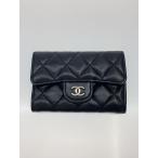 シャネル キャビアスキン カードケース A50169 ブラック レディース フラップ マトラッセ CHANEL 中古