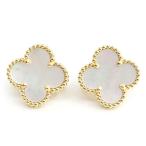 【栄】ヴァンクリーフ&アーペル K18YG ヴィンテージアルハンブラ ピアス ホワイトシェル 白蝶貝 MOP VCARA44100 750YG