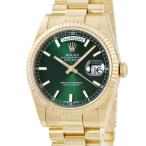 【3年保証】 ロレックス デイデイト 36 118238 メーカーOH済 P番 K18YG無垢 グリーン バー フルーテッドベゼル 自動巻き メンズ 腕時計