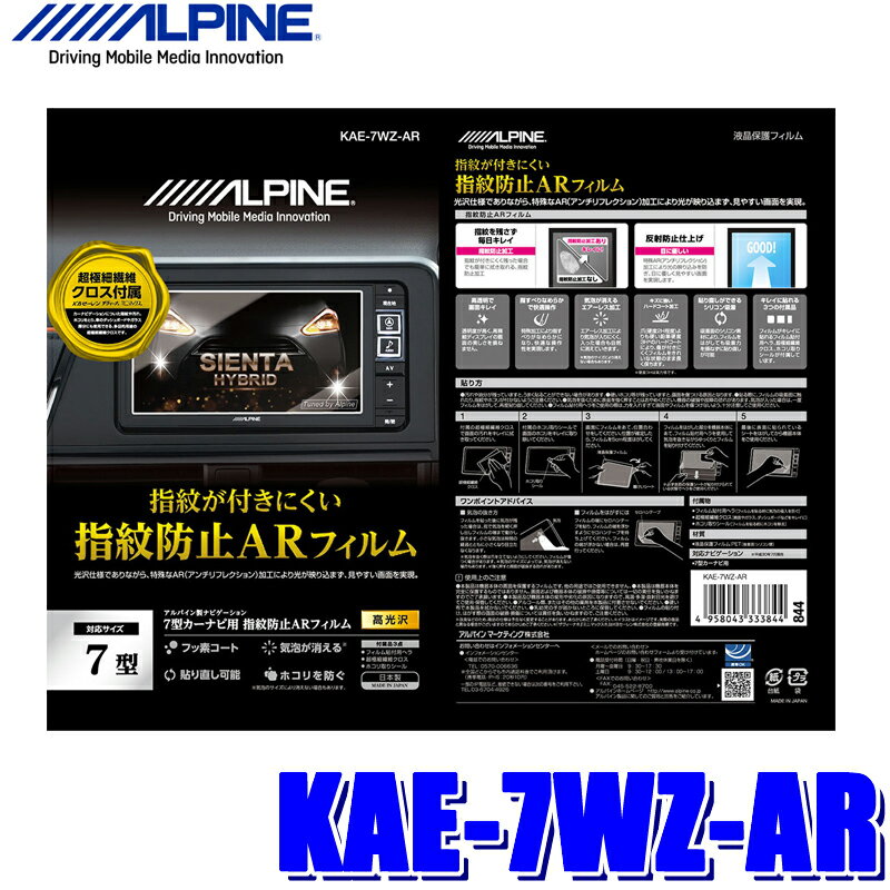 【メール便対応可】KAE-7WZ-AR ALPINE アルパイン 7WZ用カーナビ指紋防止ARフィルム 超極細繊維クロス/ホコリ取りシール/フィルム貼付用ヘラ付属