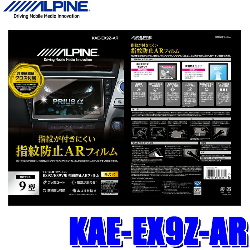 【メール便対応可】KAE-EX9Z-AR ALPINE アルパイン EX9Z用カーナビ指紋防止ARフィルム 超極細繊維クロス/ホコリ取りシール/フィルム貼付用ヘラ付属