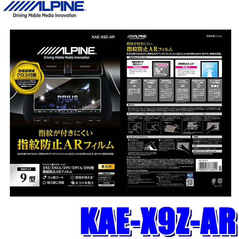 【メール便対応可】KAE-X9Z-AR ALPINE アルパイン X9Z用カーナビ指紋防止ARフィルム 超極細繊維クロス/ホコリ取りシール/フィルム貼付用ヘラ付属
