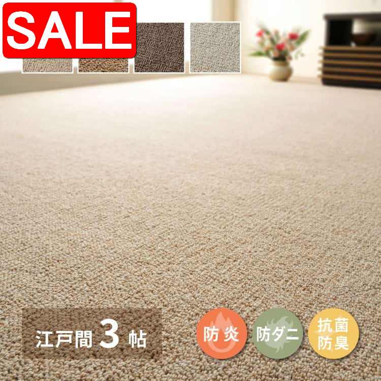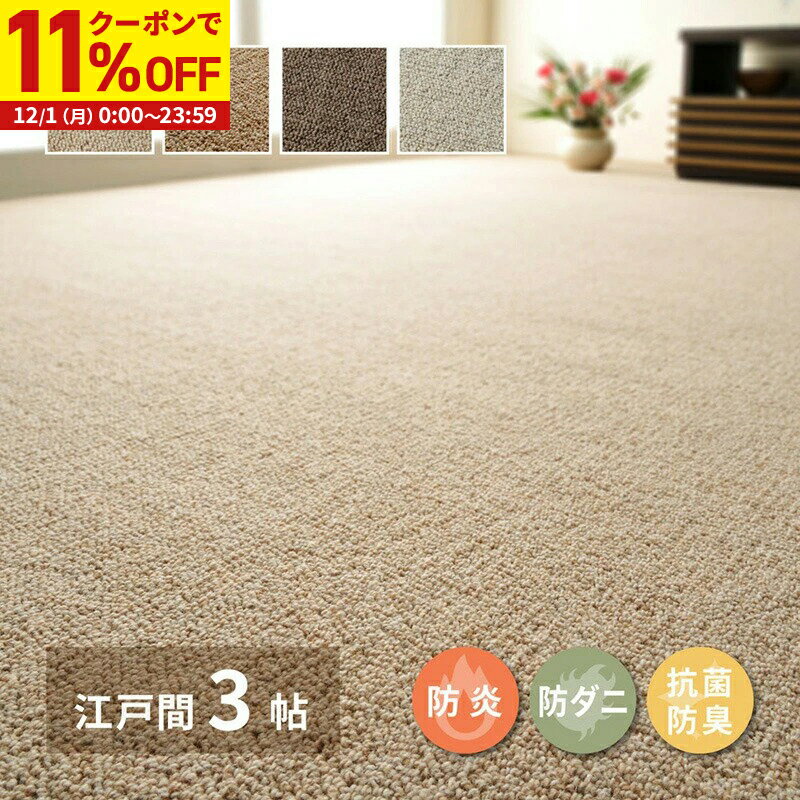 【11%OFFクーポン配布中★12/1に使える】 敷き詰めカーペット オペラ 江戸間3帖 3畳 防炎 防ダニ 抗菌 防臭 ウールカーペット 日本製