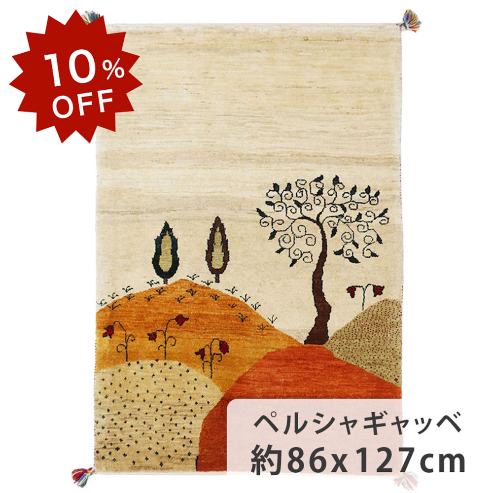 【10%OFF!楽天スーパーSALE限定!】ペルシャギャッベ ファインクオリティ 約86cm x 127cm 玄関マット ウール100% ナチュラル 生命の樹 山 羊毛 天然 ふかふか モコモコ 厚手 ランドスケープ 現品限り ホットカーペット対応 床暖房対応 オールシーズン 一年中 ペルシャ製