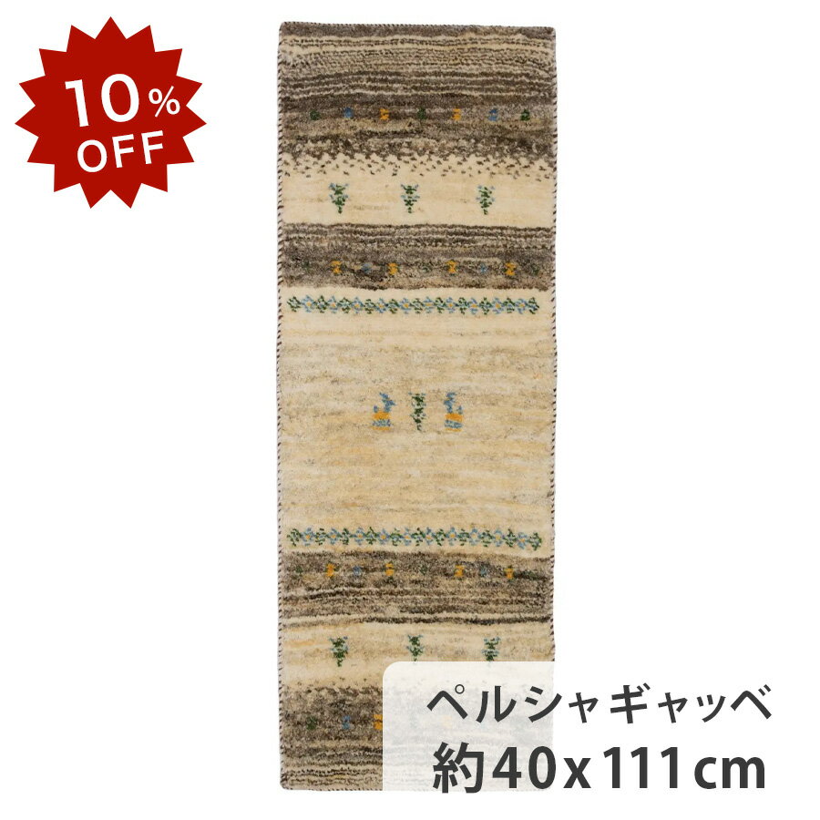 【10%OFF!楽天スーパーSALE限定!】ペルシャギャッベ 約40cm x 111cm ランナー ベージュ ボーダー ウール モコモコ ふかふか 厚手 現品限り ホットカーペット対応 床暖房対応 オールシーズン 一年中 ペルシャ製 細長 手織り