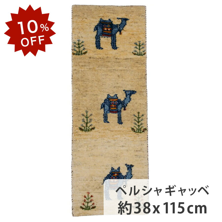 【10%OFF!楽天スーパーSALE限定!】ペルシャギャッベ 約38cm x 115cm ウール100% 羊毛 天然 ふかふか モコモコ 生命の樹 木 ラクダ 動物 アニマル 現品限り ホットカーペット対応 床暖房対応 オールシーズン 一年中 ペルシャ製 夏
