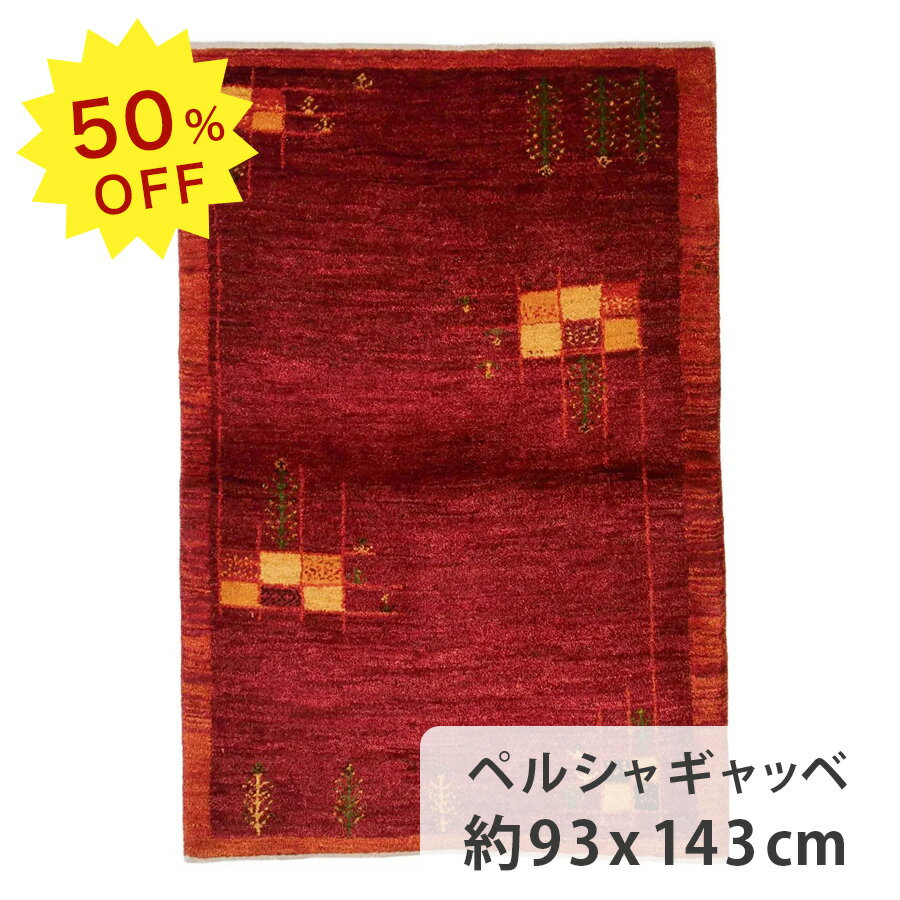 【50%OFF!楽天スーパーSALE限定!】ペルシャギャッベ ファインクオリティ 約93cm x 143cm リビング レッド ウール100% 赤色 羊毛 自然 床暖房対応 ホットカーペット対応 厚手 現品限り 一点もの モコモコ ふかふか イラン製 春 夏 秋 冬 手織り