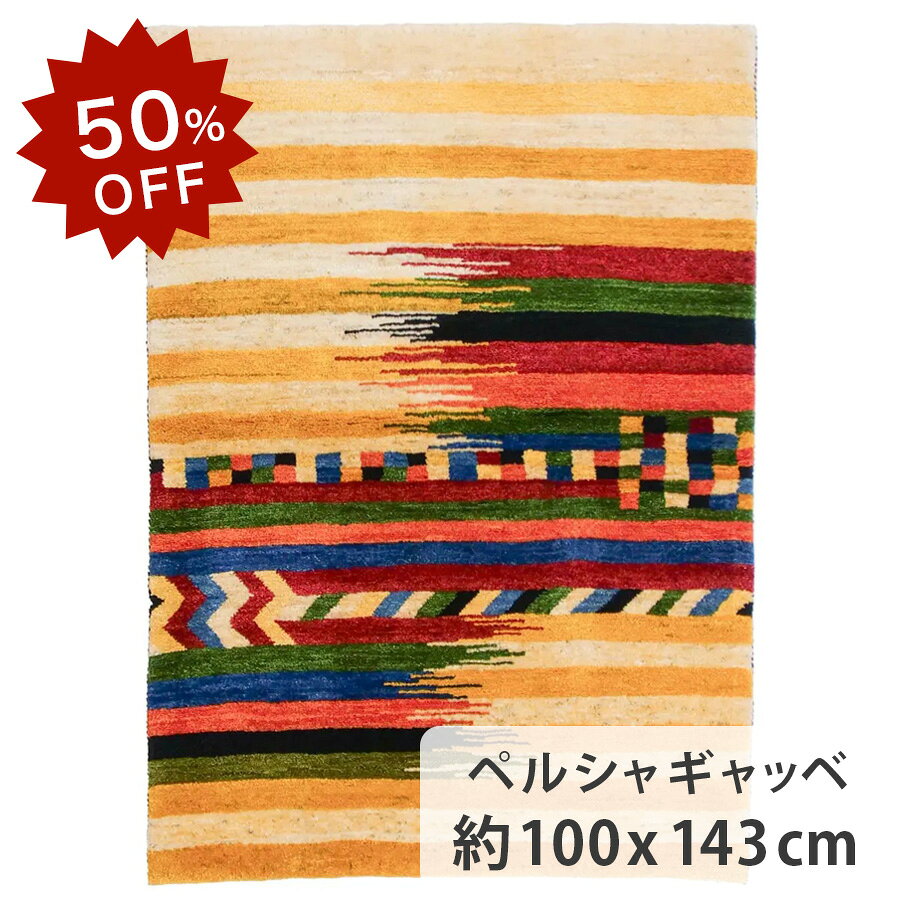 【50%OFF!楽天スーパーSALE限定!】ペルシャギャッベ 約100cm x143cm 玄関マット ウール100% イエロー 黄色 羊毛 天然 ふかふか モコモコ モダン 現品限り ホットカーペット対応 床暖房対応 オールシーズン 一年中 ペルシャ製
