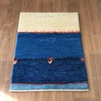 【15%OFFクーポン対象】ギャベ ギャッベ 玄関マットサイズ 95×64cm アイボリー&ブルー イラン産手織りラグ