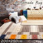 ウールラグ ファインギャベ 200×250cm 手織り ウール100% プレーベル ギャベ柄 ギャッベ柄 ラグ ラグマット カーペット 防炎 床暖房対応 P01 春夏秋冬用