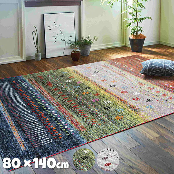 ラグ 長方形 約80×140cm トルコ製 ウィルトン織り ギャベ柄 おしゃれ ラグマット カーペット 小さい 小さめ 抗菌防臭 オールシーズン ホットカーペット対応 ソファ前 ベッド前 アジアン ポップ カラフル
