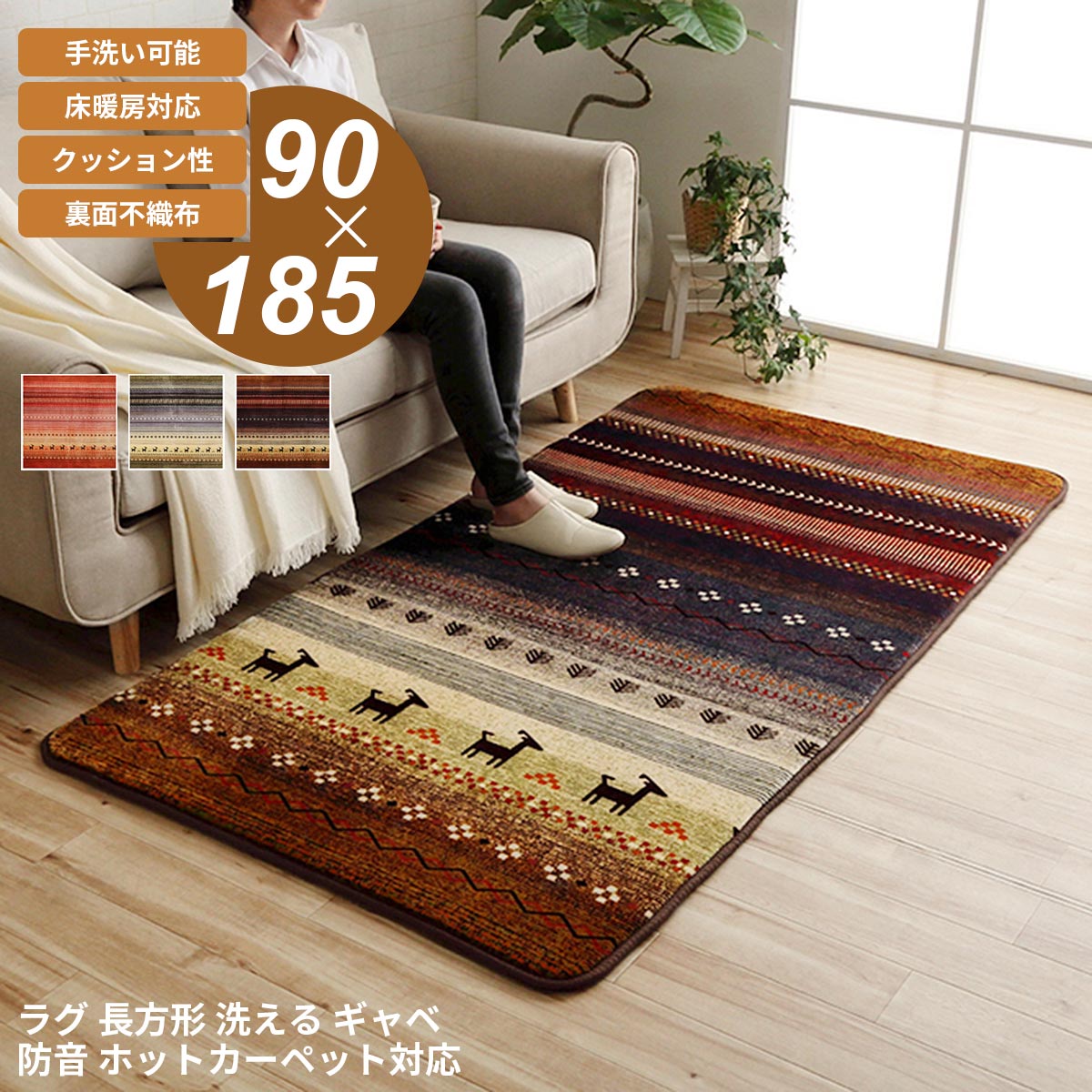 ラグ 正方形 洗える ギャベ 防音 約90×185cm ホットカーペット対応 【メーカー直送商品】☆