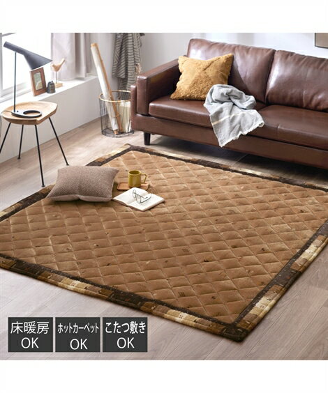 【全品対象クーポン配布中★先着100名 50%OFF★先着3,000名 25%OFF!12/4 20時開始】ラグ カーペット 絨毯 ふっくらラグ|ギャッベ デザイン 中わた入り 春 秋 冬 おしゃれ ブラウン | 約185×185cm | ニッセン nissen