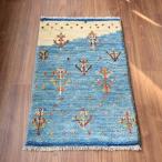 【15%OFFクーポン対象】イランの手織りラグ ギャッベ 118×85cm 動物と植物 ブルー
