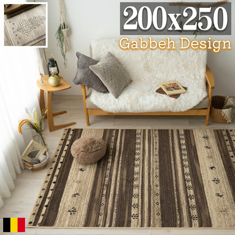 【クーポン利用で20%OFF!】 ラグ 3畳 ギャベ 風 200×250 ラグマット エスニック ウィルトン 織 カーペット ギャッベ ブラウン 北欧 幾何学 アンティーク ナチュラル おしゃれ アクセントラグ 絨毯 じゅうたん リビング 春 夏 秋 冬