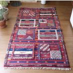 バルーチ ラグ 部族絨毯 手織り 198x119cm あずき色 連なるひし形