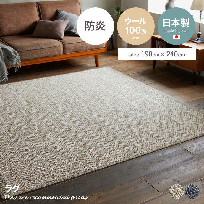 【クーポンで15%OFF! 2/10 0:00~ 2/11 23:59まで★】ラグ ラグマット マット カーペット 絨毯 四角 190×240 長方形 防ダニラグ ホットカーペット対応 日本製ラグ ウール100% オールシーズン 幅190 人気 新生活 オシャレ お洒落 国産ラグ 床暖対応