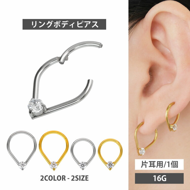 【店内3点以上で20%OFFクーポン】【ワンタッチで装着】ボディピアス 立爪ジュエルティアドロップセグメントリング 16G 中折れ 軟骨ピアス ヘリックス【30日間お試し期間あり/返品交換保証】