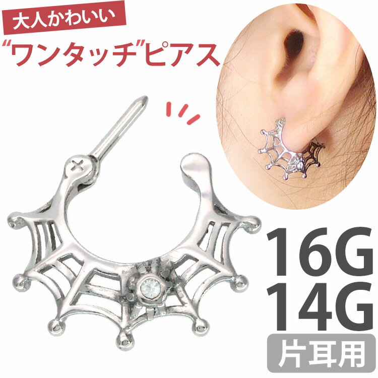 【店内3点以上で20%OFFクーポン】【ワンタッチで装着】ボディピアス スパイダーウェブリング 16G 14G 軟骨ピアス ヘリックス 【30日間お試し期間あり/返品交換保証】