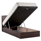 〔組立設置サービス付き〕 収納 ベッド 通常丈 シングル 跳ね上げ式 縦開き 深さ44cm ハイタイプ 日本製薄型ポケットコイルマットレス付き ダークブラウン フ...