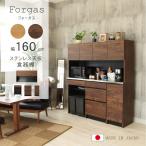 食器棚 完成品 幅160 おしゃれ 160cm幅 キッチンボード 高さ180 ステンレス天板 カップボード 木目調 下台60ダスト60引出40右開 フォーガス