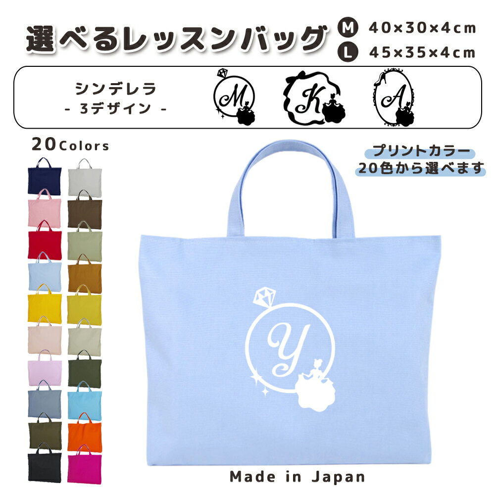 【SS期間中ずっと2点で5%OFFクーポン有】[受注生産] 名入れ レッスンバッグ マチ付き コットン素材 ( Mサイズ 40 × 30 / Lサイズ 45 × 35 )( イニシャル / シンデレラ 指輪 リボン ガラスの靴 ) | 入