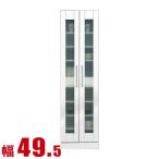 食器棚 収納 完成品 スリム 60 ダイニングボード モナコ キッチンキャビネット 幅49.5cm 鏡面ホワイト キッチンボード 書棚 棚 ガラス扉 完成品 日本製