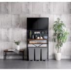 ラック 棚 クールモダン 木目柄 ガラス 扉付き キャビネット コレクション 飾り棚 サイドボード グレー ブラック 日本製 大川家具 幅80cm