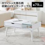ローテーブル ガラス センターテーブル おしゃれ テーブル 引き出し 木製 オシャレ 80 リビングテーブル ホワイト 大理石柄 マーブル かわいい