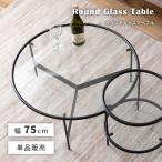 ラウンドテーブル ガラス ローテーブル リビングテーブル センターテーブル 机 つくえ テーブル ガラステーブル 丸 幅75cm 黒 おしゃれ アイアン ネストテーブル